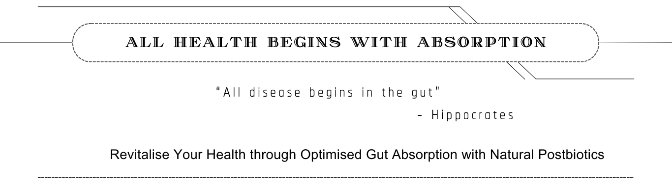 - All Health Begins With Absorption and we believe Natural Postbiotics is the key for enhancing nutrients absorption and gut health for overall healthy wellbeing
